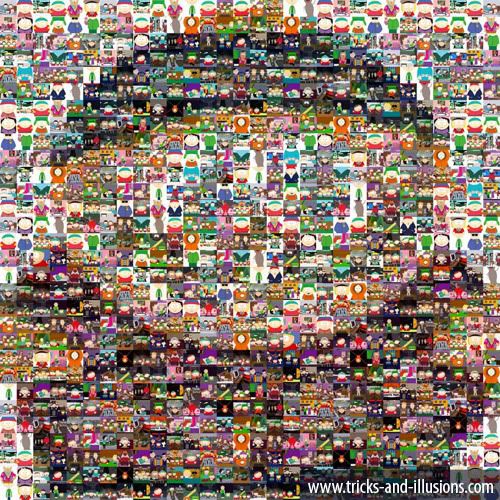 Hopefully you recognize Eric Cartman from South Park in this mosaic optical illusion.